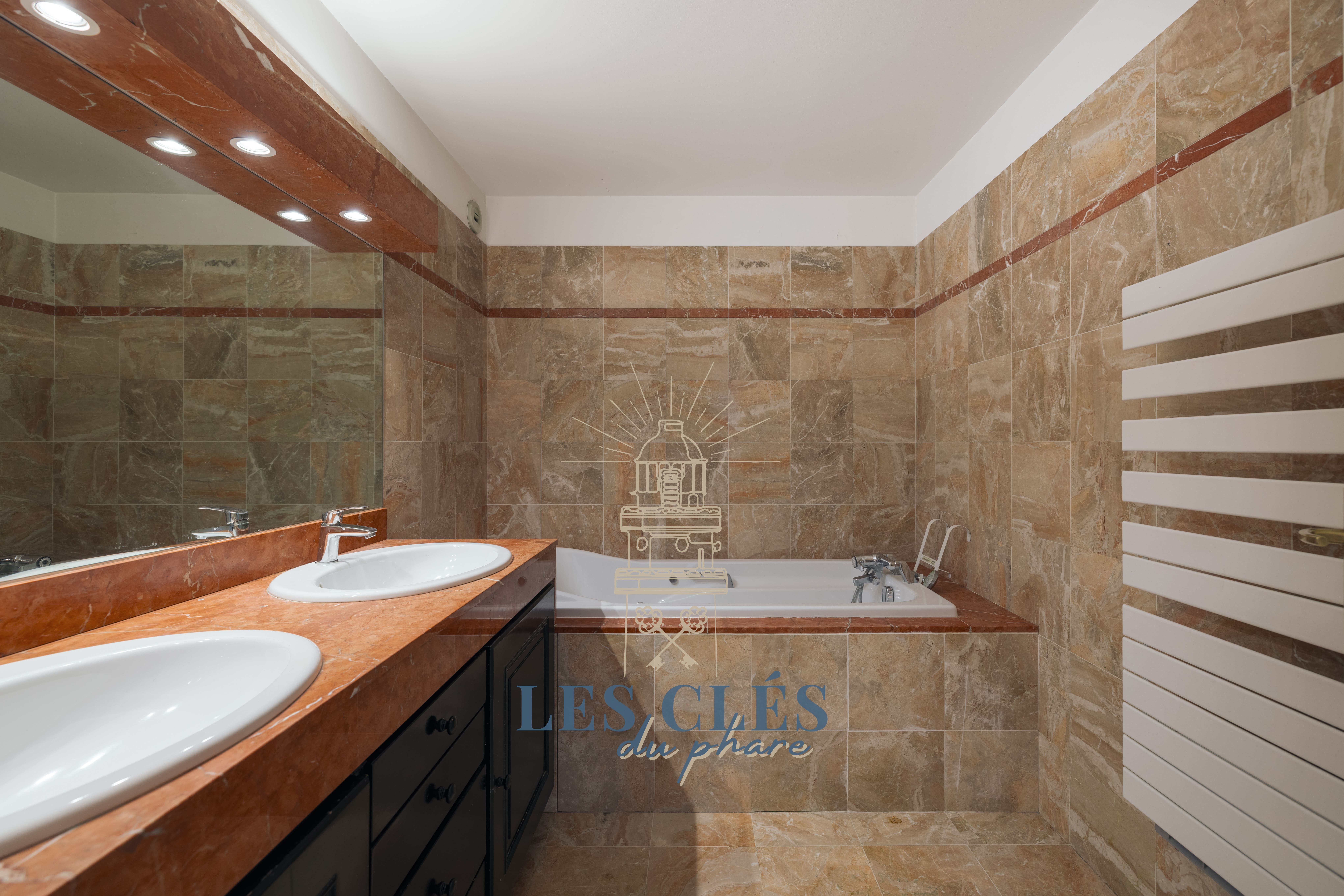 1 salle de bains avec doubles vasques.