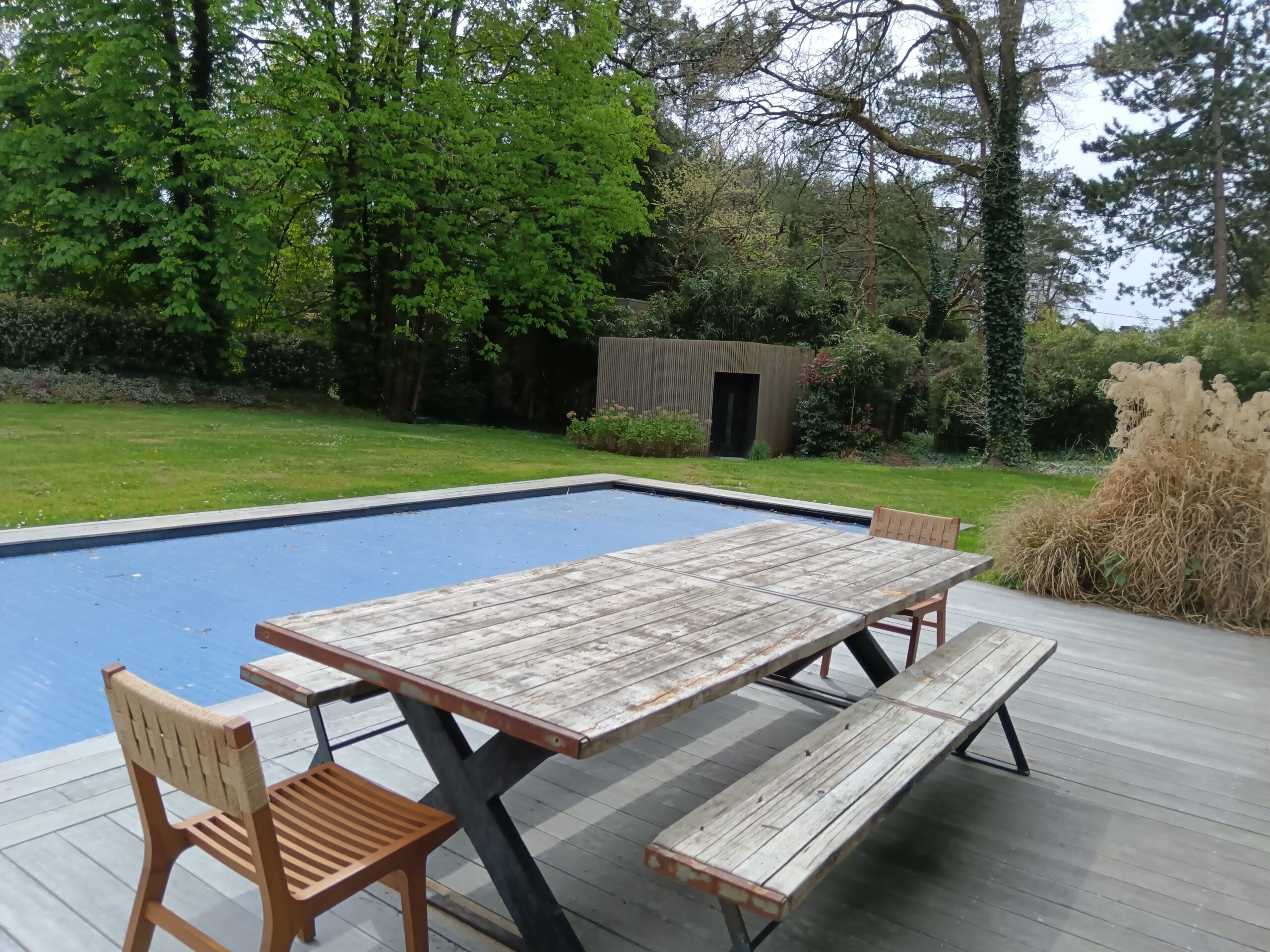 À l’extérieur, vous serez séduits par une piscine chauffée exposée sud-est, idéale pour profiter du soleil tout au long de la journée dans un cadre paisible et verdoyant.