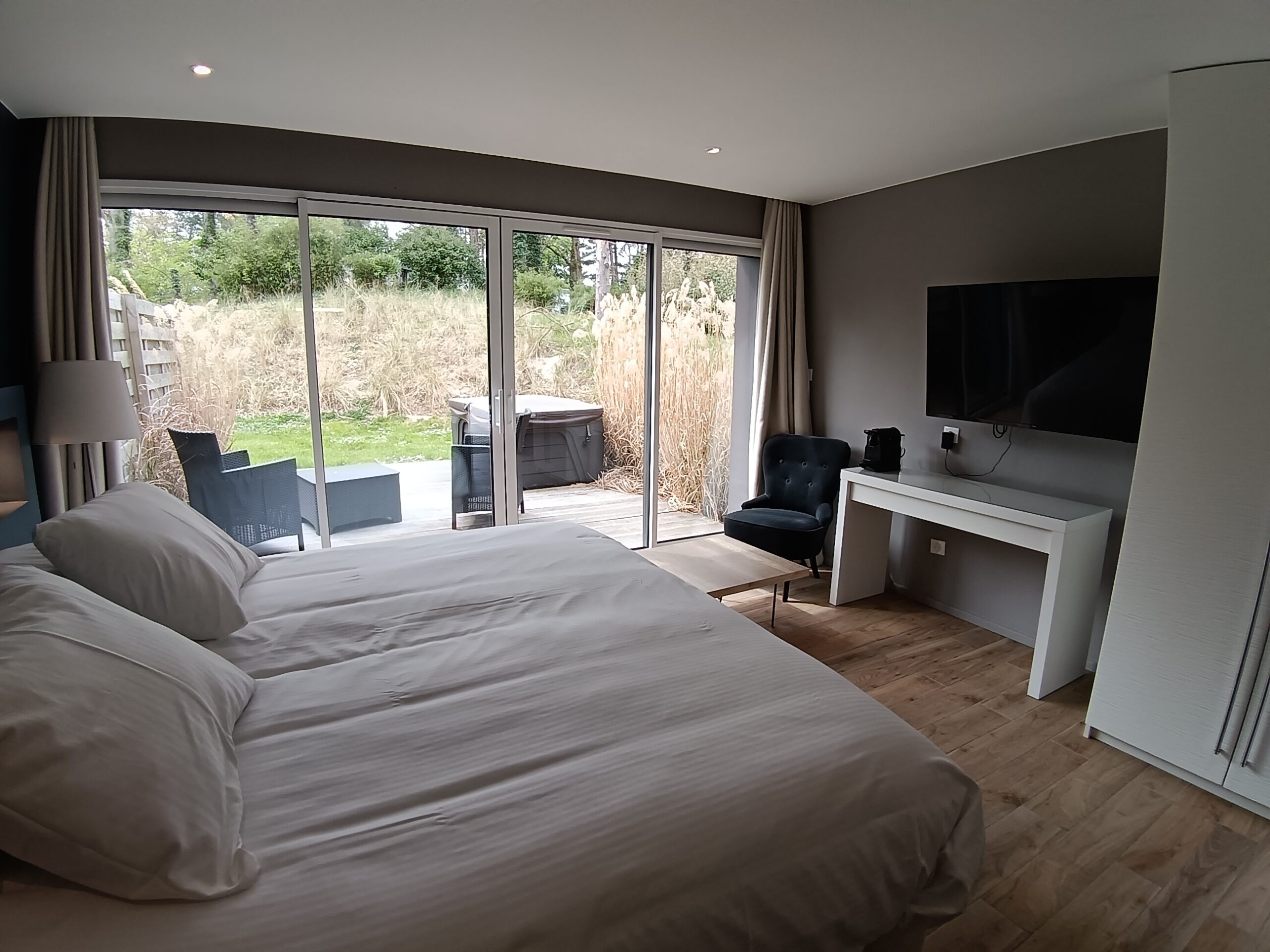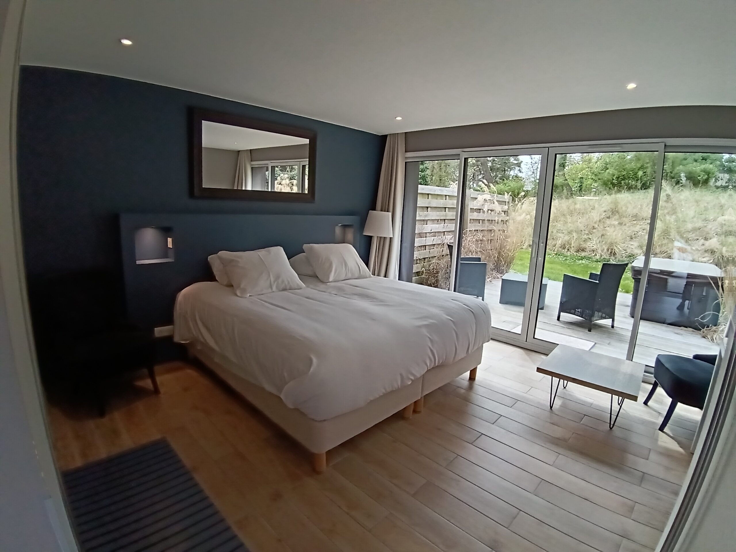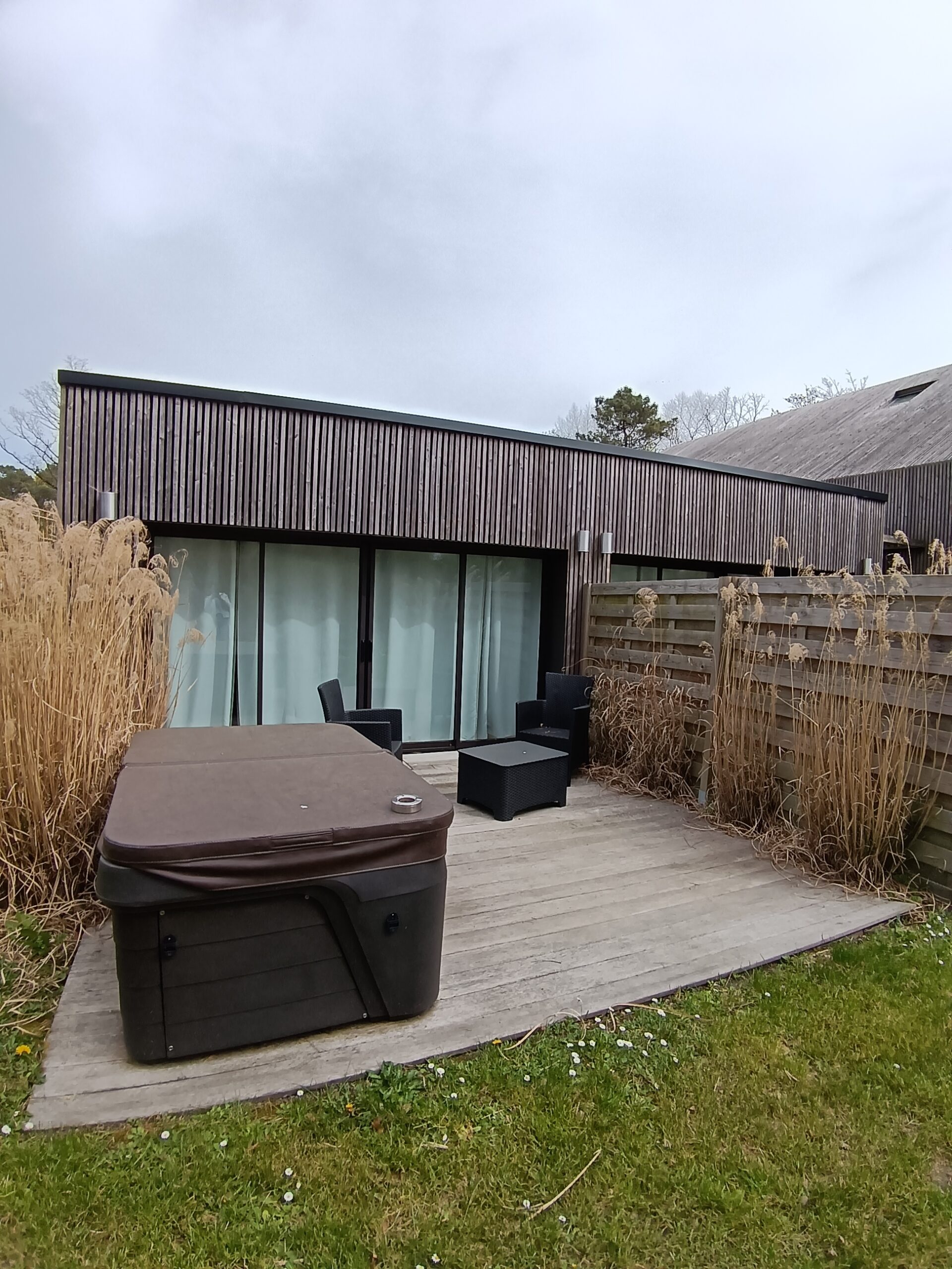 Une terrasse privative avec jacuzzi.