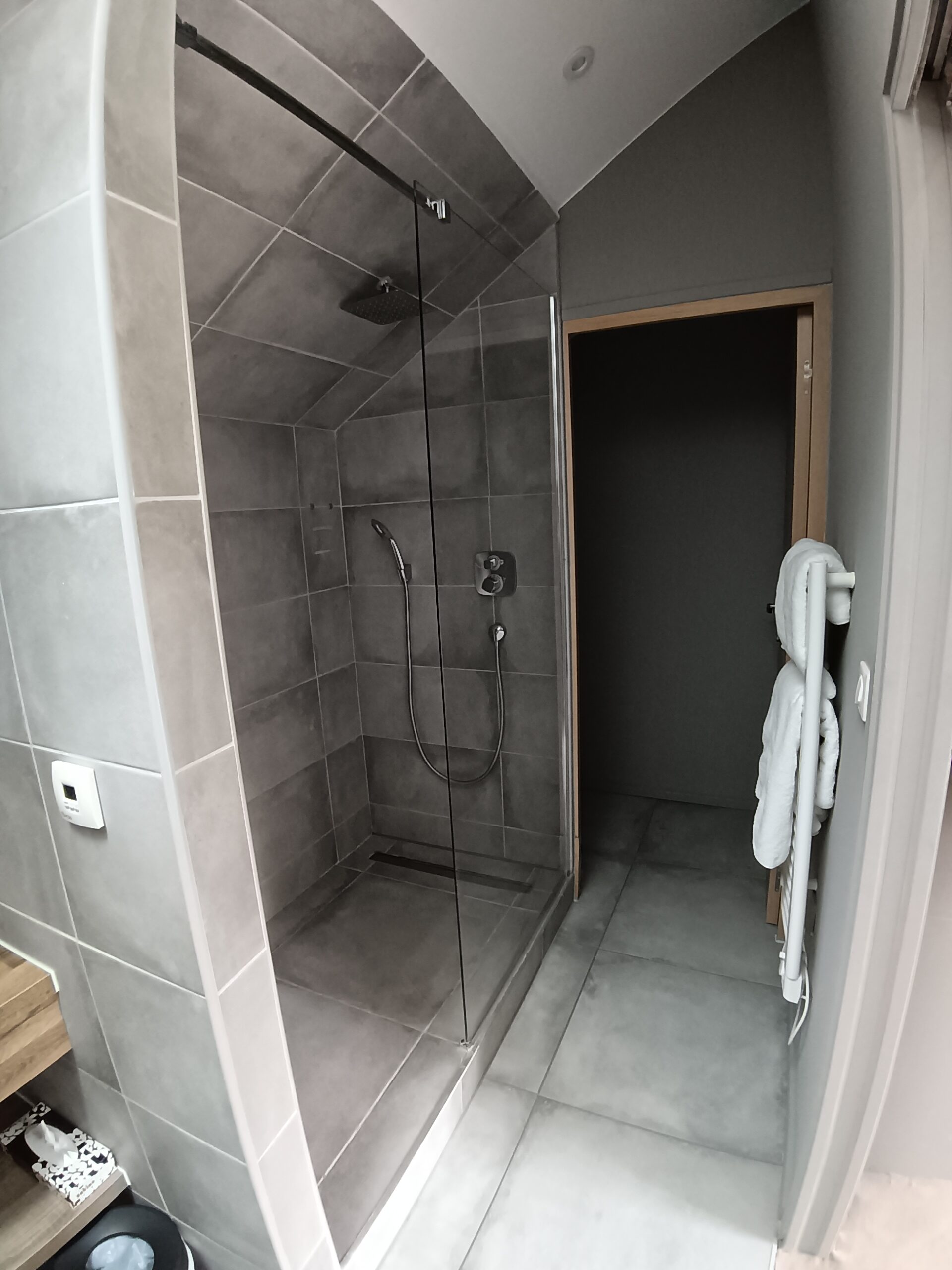 Une dépendance avec 2 lits simples rapprochés avec TV et salle de douche.